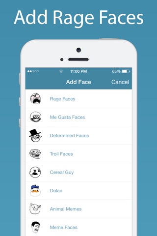 ● Select from hundreds of popular Rage Faces (more added all the time).