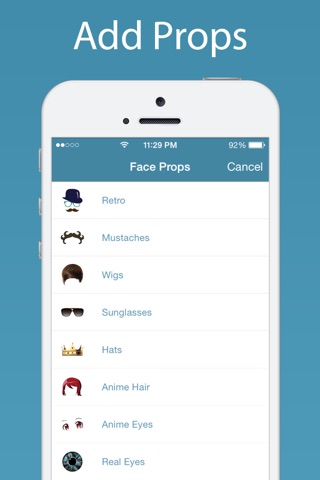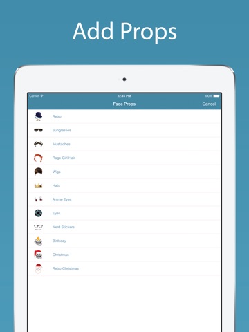 ● Add accessory images, including mustaches, hats, glasses, eyes and more!