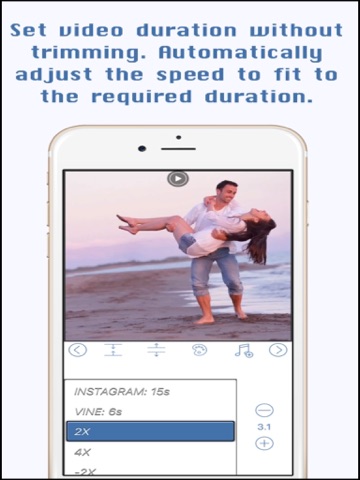 The only Video Editor that allows to set your video duration to whatever you like!1