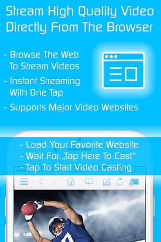 * The app streams only the video part of a website and not the whole website content (No screen or tab mirroring!).