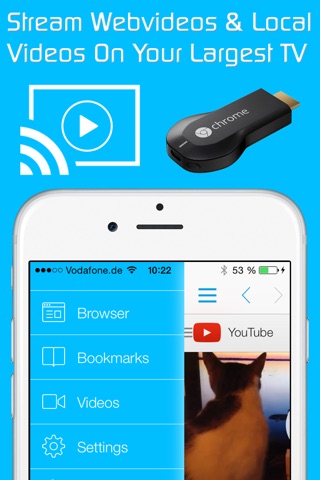 With Video & TV Cast you can browse through the web and stream any online video on your Chromecast (movies, tv shows, sports, music and more). Just navigate to your favorite website and send the embedded video with a single tap to your Chromecast. The discovered video will be shown below the browser. A tap on the video link will send it to your Chromecast immediately. Streaming personal media from your device is also supported.