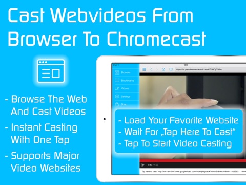 Watch any web video and your personal photos, videos & music on your Chromecast or Google Cast powered TV. Enjoy the show on your big screen.