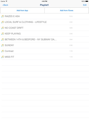 iTunesとカメラロール内の動画(music音源)をまとめることができ、ランダム再生やプレイリストも作れるので良い。 だが、プレイリストに音楽を入れる時に一つ一つ選択して入れなくれてはならず手間がかかってしまう。 まとめて音楽を選択できればもっと良くなると思う。 もし次回アップデートがあれば改善してもらいたいと思う。
