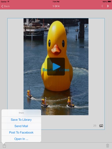 4) Share : Share video using Facebook , Mail , Save to Library and Open in other apps.