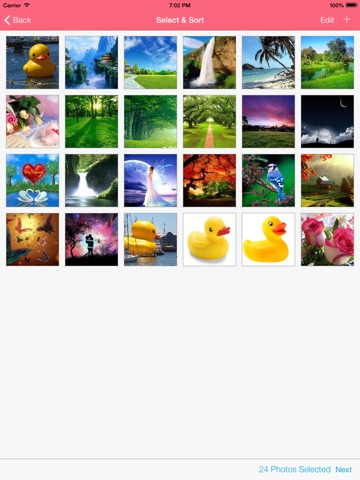 2) Edit - Sort selected Photos by dragging , Edit Photo using beautiful Aviary by tapping on Photo