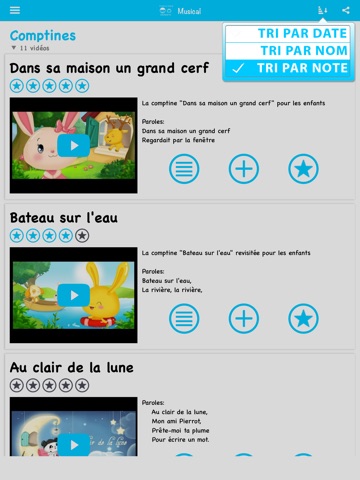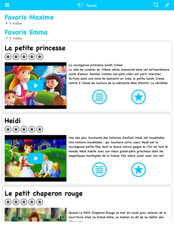 Une vidéo leur plait ? Ajoutez-la à votre liste de Favoris pour créer la vidéothèque mobile de vos enfants. Créez des groupes et réorganisez les vidéos comme vous le souhaitez. Fini les dessins animés incomplets ou de mauvaise qualité, nous sélectionnons pour vous et vos enfants les meilleures vidéos disponibles en ligne.