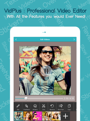 Merry Christmas!! Introducing VidPlus, the new and coolest Video Editor which has all the features you would ever need! Add Text, Free hand, Stickers, Trim, Merge, Slow/Fast, Reverse, TIMELINE, PROJECTS … you name it, it has everything! So what are you are waiting for, get it now and see it in action!