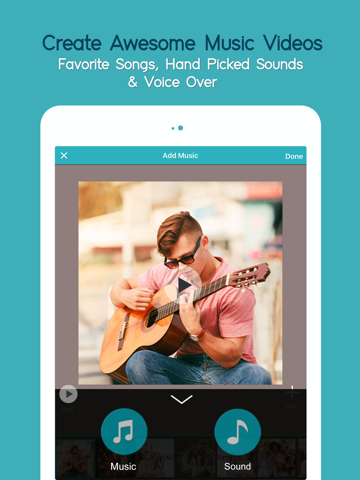+ MUSIC – Create awesome Music Videos by choosing songs from your Music Library.