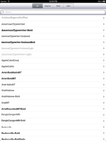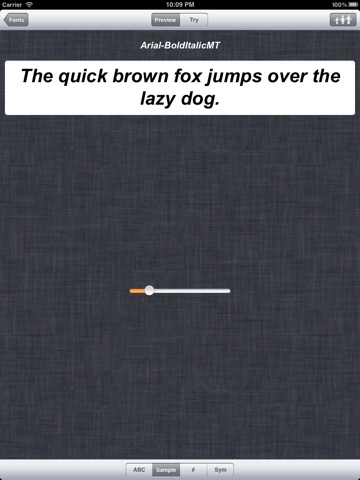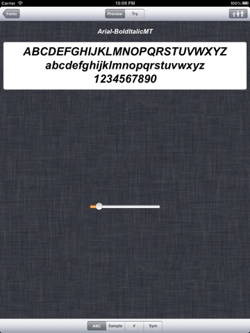 Программа показывает все установленные на устройстве фонты, все варианты их начертания, все размеры. Вы можете написать свой текст, чтобы посмотреть как он будет выглядеть на устройстве. Программа предназначена в основном для разработчиков, желающих увидеть как выглядит текст на устройстве, либо быстро подобрать желаемый шрифт.