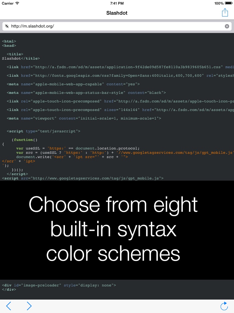 Had the same app idea - you were faster ;-) For the next version please add: - size to fit for source code (width) - search the source code for expressions - clickable links - pinch to zoom