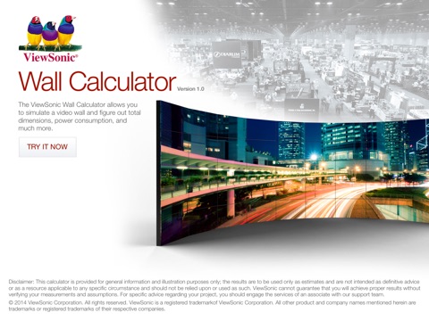 The ViewSonic Wall Calculator allows you to virtually create a video wall and figure out total dimensions, power consumption, weight, maximum resolution, total pixels and price of the total wall.