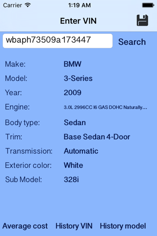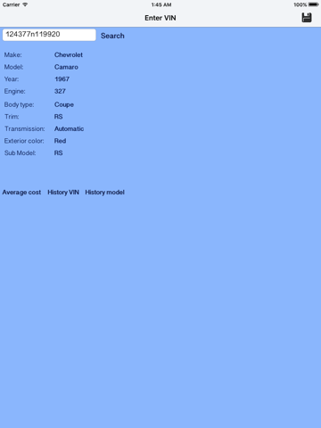 Informarion about VIN, sales history of VIN and Model.