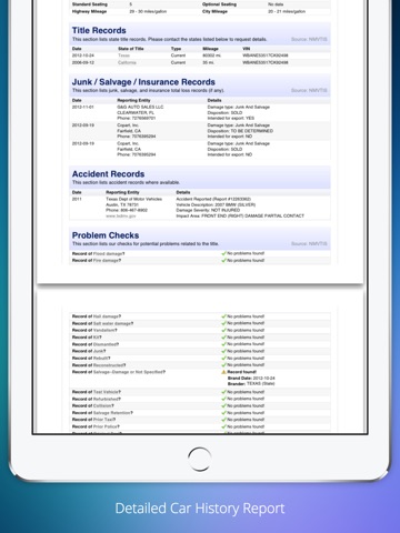 Vehicle history reports purchased through the VIN Examiner app are $12.99, for a report containing information supplied by the National Motor Vehicle Title Information System (NMVTIS) database, which includes data compiled by insurance carriers, salvage auctions, and auto recyclers.