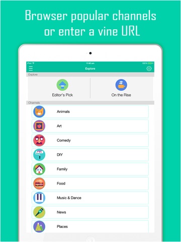 Also, VineGram - View, Like and ReVine works as a Vine client for your iPad. Browse your timeline for favourite videos, or browser popular categories such as Comedy, Art, Cats, Dogs, etc.