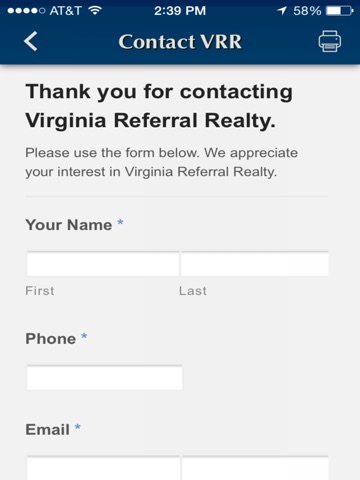 Download our Free Mobile App and stay in touch withe Virginia Referral Realty. VRR is a real estate brokerage for agents who work full time on a referral basis. This means they do not list properties or write contracts but instead refer their clients to agents who perform these duties.