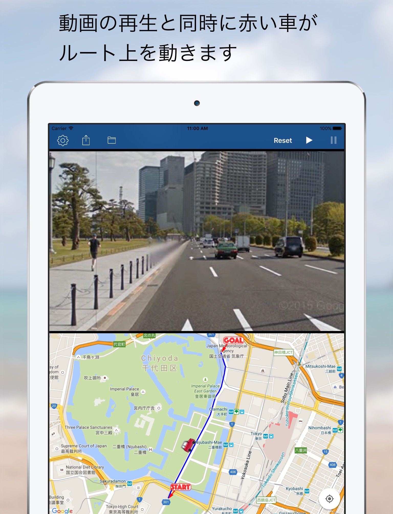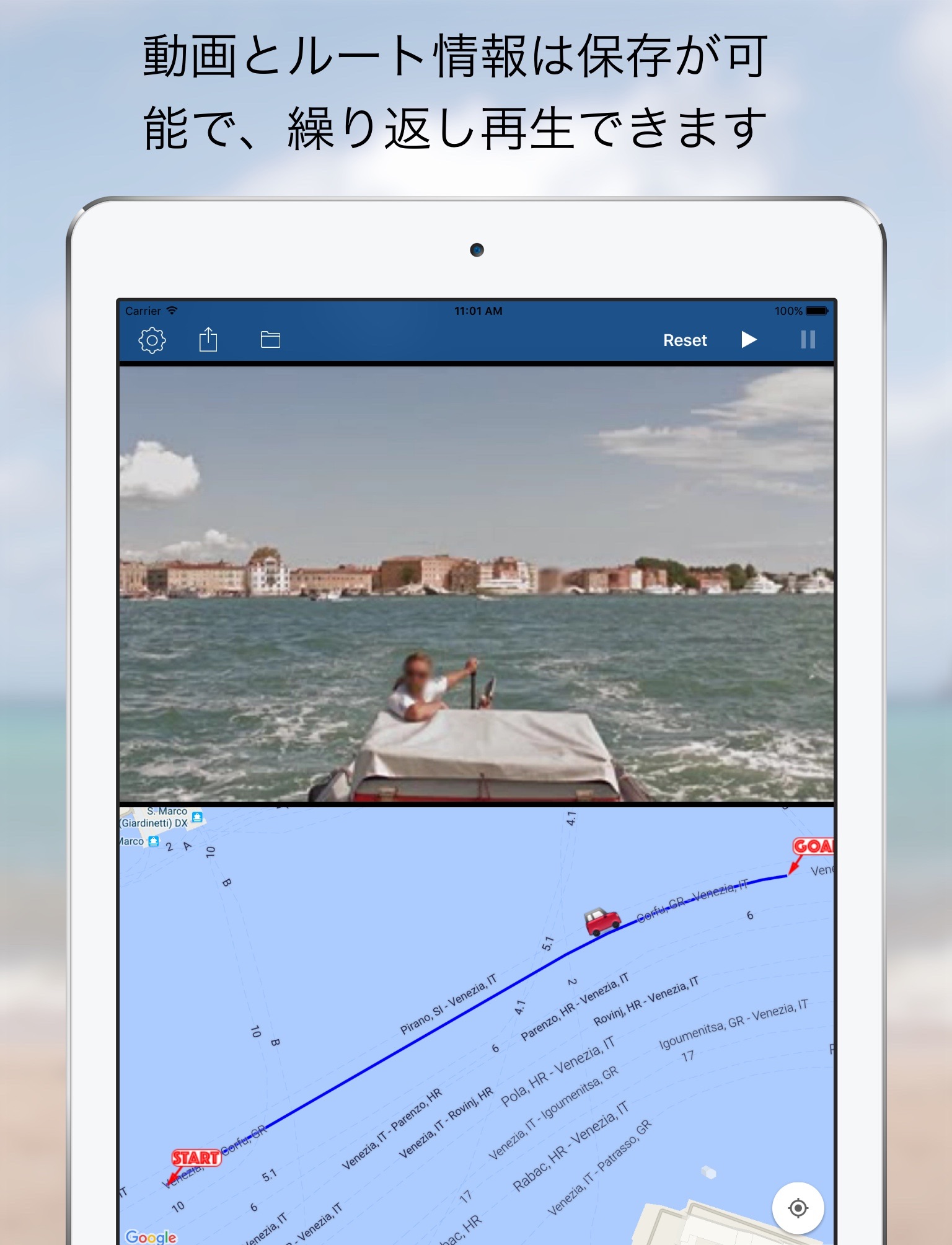 3 You can stop and restart the video . Accordingly car on the map stops snd restarts .