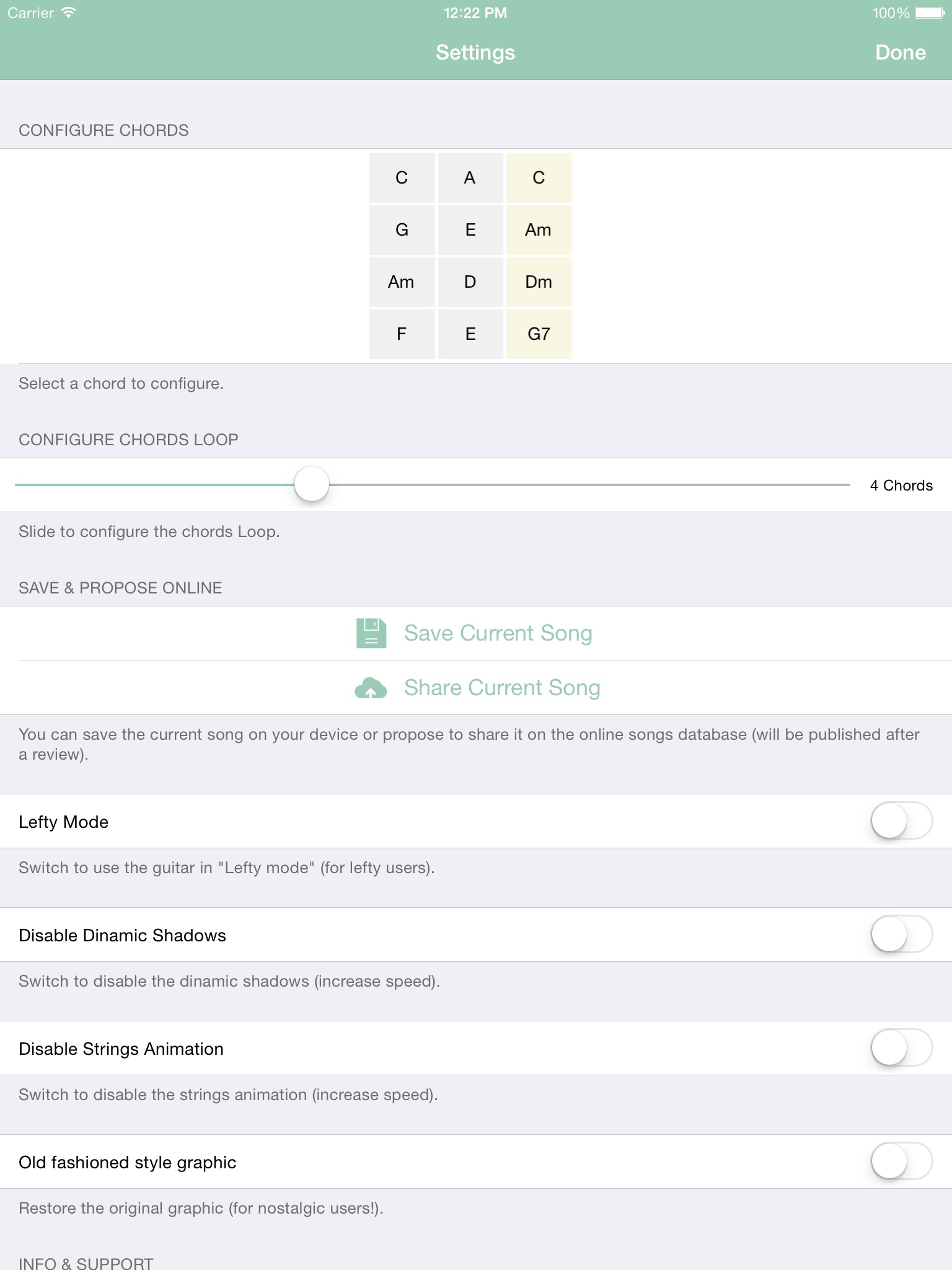 3. Finally, on the Guitar view, touch the big metal chords-holder to loop through the programmed chords (showed in light brown color).