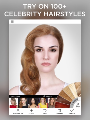 You can take a photo with your camera, upload from your Album or Facebook, or choose a model to try on nearly 2,000 unique products and hairstyles.