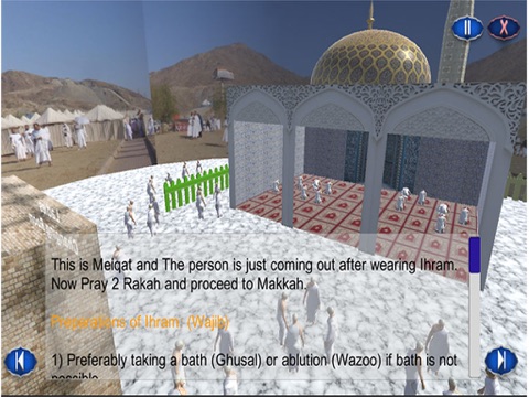 Virtual Umrah guide is the only 3D / 4D Islamic app that is a Hajj book or Hajj o Umrah teacher that teaches you obligations of Hajj in a thrilling Islamic virtual reality world. Learn how to perform Hajj o Umrah as you are doing it yourself in the fascinating virtual world. In this version, only the Hajj e Ifrad is included. But soon we are going to add Hajj e Tamattu, Hajj e Qiran and much more as well.