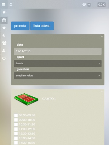 Applicazione per la prenotazione dei campi online dedicata ai soci del circolo Virtus Tennis Bologna.