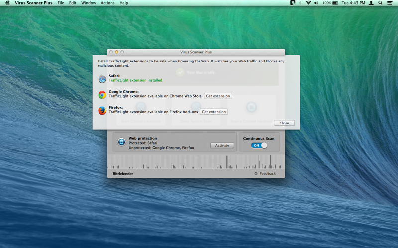Très bon antivirus pour Mac ne ralentissant pas l’ordinateur et dont la base de signature est régulièrement mise à jour. En rajoutant l’extension « Trafficlight » (du même éditeur) pour vos navigateurs Safari, Firefox et Chrome afin de détecter les codes malveillants sur certains sites vous êtes relativement bien protégé.