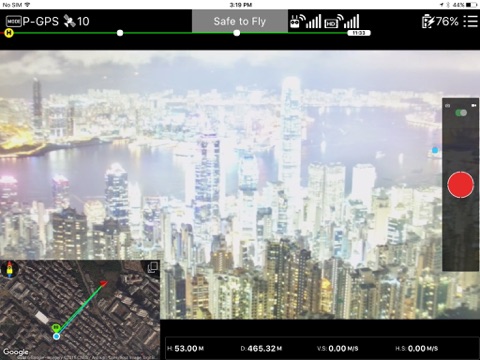 • FPV mode allows to switch the video preview between drone camera and iPhone camera.