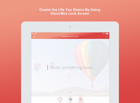 The VisionBox team sincerely believes that your VisionBox is a launching off point towards making your dreams a reality. The law of attraction states that you become what you think about most. With this in mind we created an app that allows you to create a beautiful lockscreen with words that represent what youre currently trying to attract into your life. Whether you want more money, better relationships, a better career, a better body, or just a happier state of mind - VisionBox is specifically designed to help get you there.