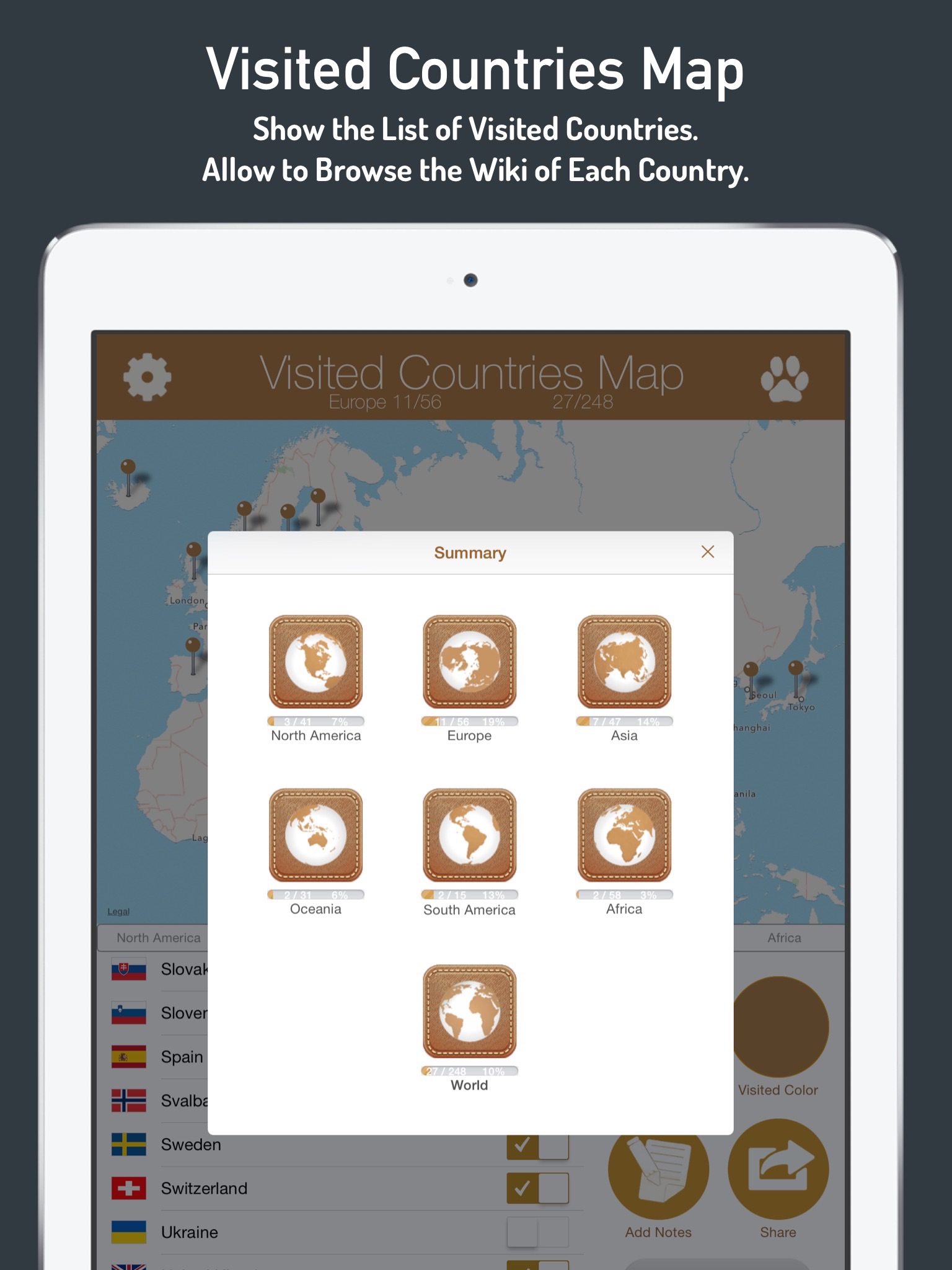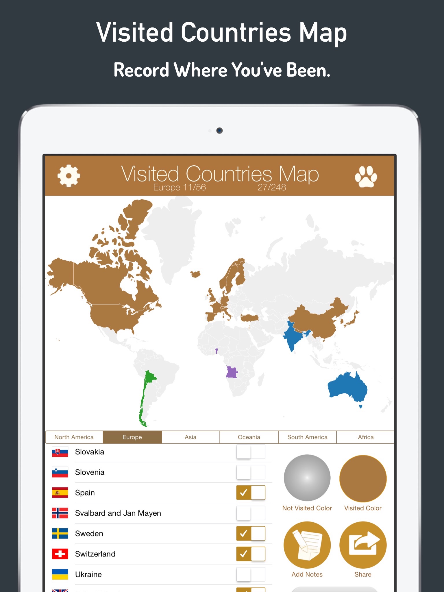 Visited Countries Map - World Travel Log for Marking Where You Have Been at Mac App Store analyse
