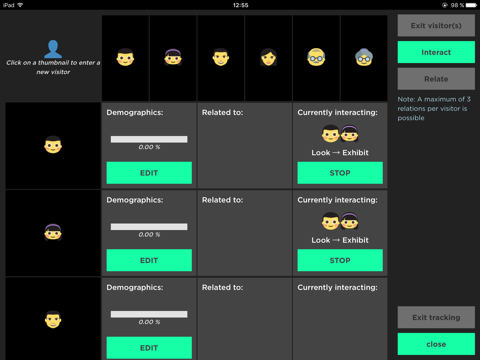 VisiTracker is an innovative application that facilitates recording of human behaviour and interaction. After free registration, Studies are configured in the online portal, and downloaded to your iPad. Tracking can then take place on-site regardless of internet connectivity. At completion, collected data is synchronised with the portal where it may be visualised, analysed or exported.