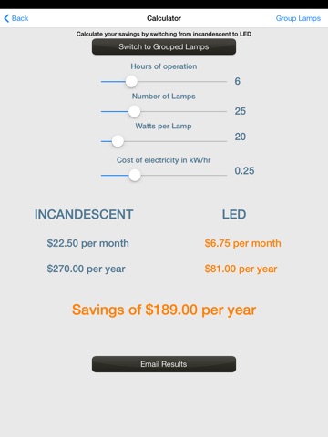 The Vista LED Savings app for iPhone and iPad makes it easy for landscape professionals to calculate customer LED cost recoupment on the jobsite. In addition, the app features: