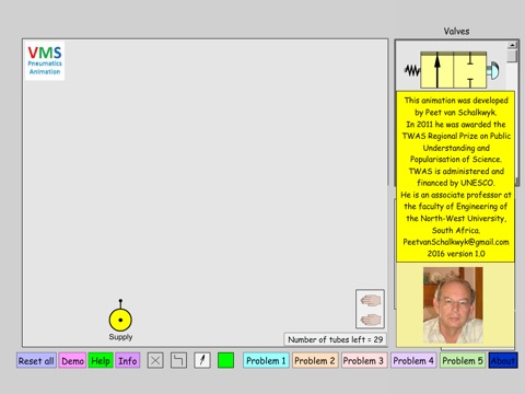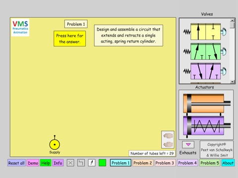 The user drags valves, actuators and exhausts to a design board, draw tubes, activate and then see an animation of how the design works!