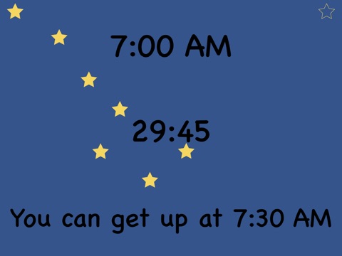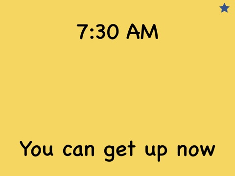 When your child is supposed to be in bed, the background color is blue and a message indicating the time that they can get up is displayed. When its time to get up, the background color changes to yellow and the message is updated to let your child know they can get up. All you need to do is set the get up time and Visual Sleep Timer is ready to go. Optionally, you can enable the timer and set the duration. The timer will display and begin counting down at the appropriate time.