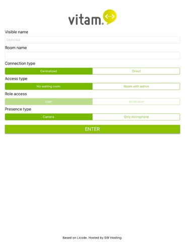 vitam® (VIdeo Tele-Assistance and Monitoring) is a set of management and remote control tools for videoconferencing. It is based on webRTC technologies using the most updated audio and video codecs. In vitam, users access to a particular room (providing a particular room identification) and the videoconference session start immediately. Users can stop/resume their audio/video streams at any moment.