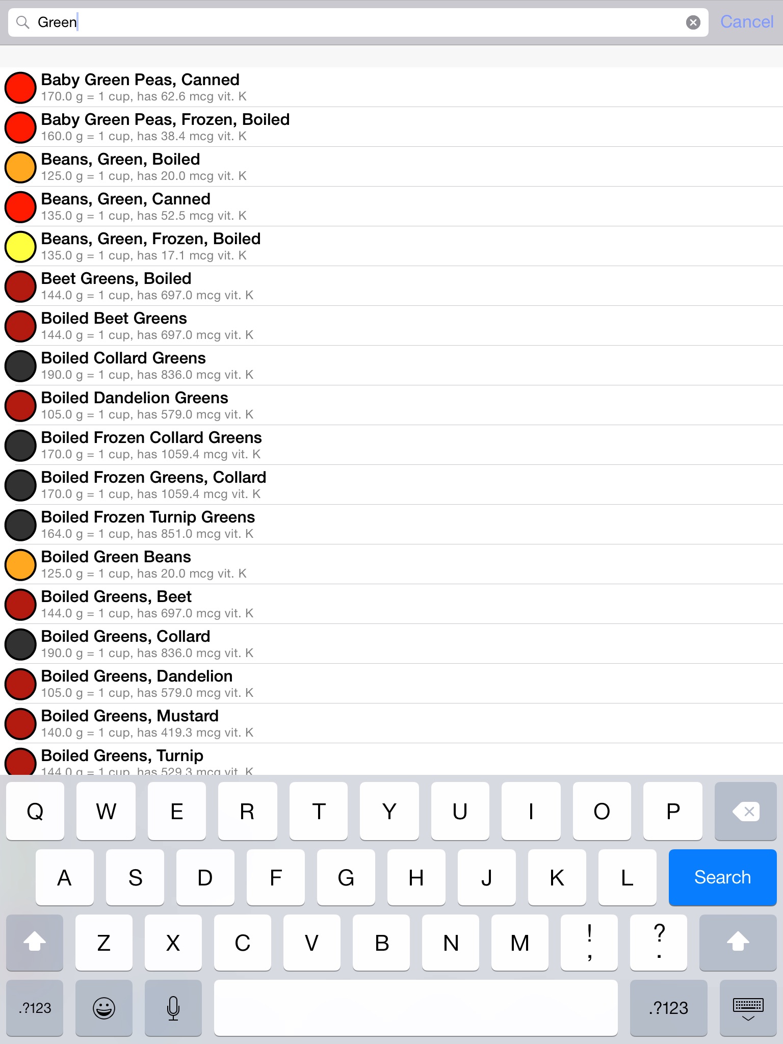 "If you or a loved one is on Warfarin, this app is a fantastic resource to have on hand to know what foods are high in vitamin K. The foods are arranged alphabetically and are color-coded to help quickly identify how much vitamin K the particular food on interest contains. Highly recommended!