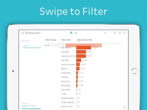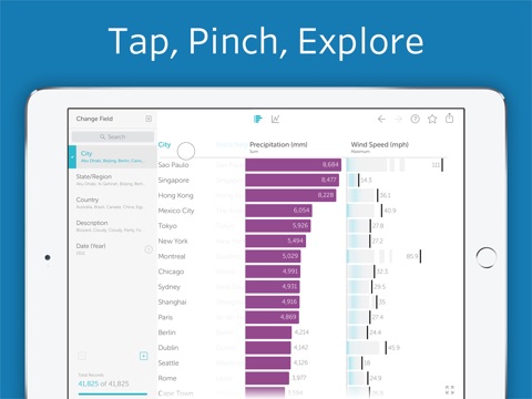 Vizable is the best app for exploring your data on iOS. Pinch, tap, and swipe to answer questions, and watch your spreadsheets come to life with beautiful animations. Just download data from Fitbit, Mint, Dropbox, Google Drive, and more - and find out what insights are hiding in that Excel or CSV attachment. Stop staring at rows of numbers: It’s time to reach out and touch your data.