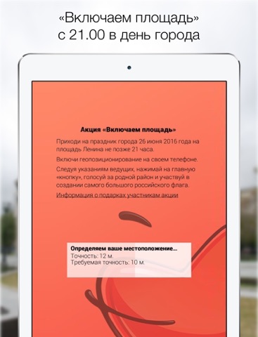 Чтобы принять участие в акции, нужно установить приложение и быть 26 июня 2016 с 22.00 на площади Ленина. Ждите указаний ведущего со сцены.