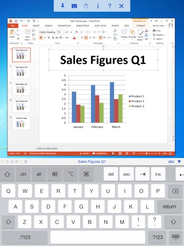 - A scrolling bar above the virtual keyboard includes advanced keys such as Command/Windows.