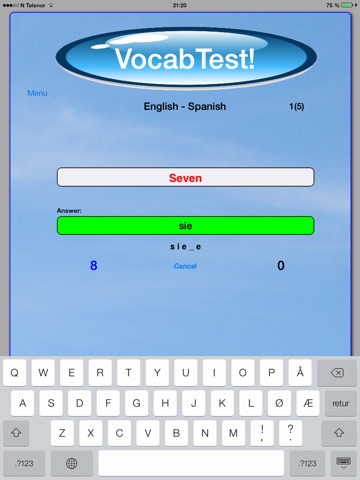 - Switch a vocabtest for example from "Spanish-English" to "English-Spanish"