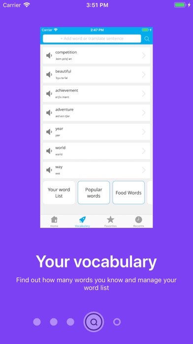 Nice design and easy interface navigation make it clear and more attractable. Complete test tasks to see which vocabulary topics of English you are good at and which of them require review. Track your progress with Visual Vocabulary.