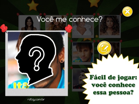 Selecione uma foto, escreva o nome da pessoa ou use uma dica. Você pode ganhar um total de 3 estrelas. Cada dica remove uma estrela