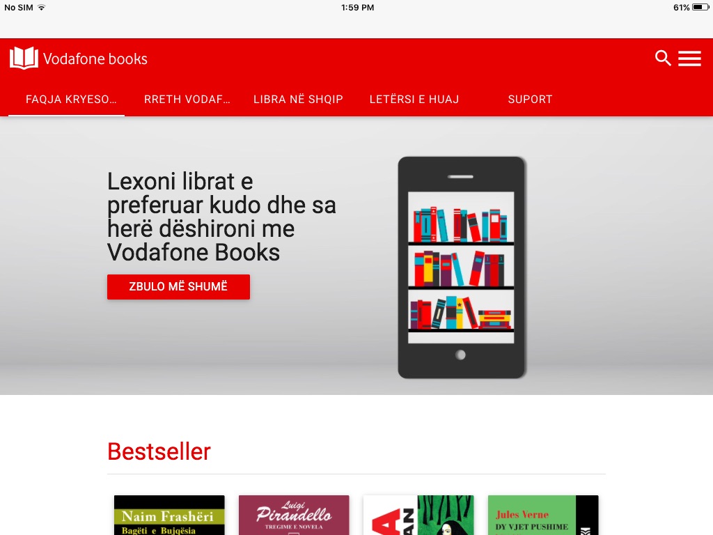 Përmes aplikacionit më të ri VodafoneBooks, ju mund të përzgjidhni librat tuaj të preferuar nga letërsia e huaj dhe shqipe dhe ti lexoni ato online në çdo kohë dhe kudo ndodheni nëpërmjet celularit apo tabletit tuaj.