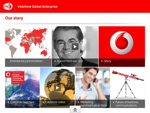 Vodafone Presentation Showcase will put the information that you need at your fingertips. No more time wasted hunting for the right brochure or presentation, no more using an old version. With Vodafone Presentation Showcase youll be able to present to your prospects like never before