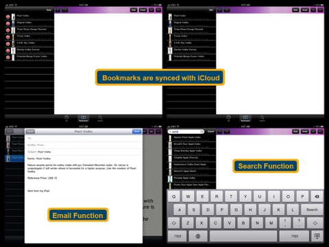 First I got really annoyed to have an add on startup screen hey this is a paid app! So minus one star there + every time you start it you have a message saying to turn on iCloud... Well, and if I dont want? Once you are finally in it does what it said. Search is by name only so it is a bit basic for 2013. I was expecting being able to search by price range, country, style, rank... So minus one star there. Speaking about rank, this app, not like imalt for whisky does not have any reviews by others or pro, so, no idea if it is a good one or not. Would be good to add this feature. Pictures are not sharp and I dont really like the look but thats personal I guess. On the positive side it is great to have this app when you wonder what bottle to buy.
