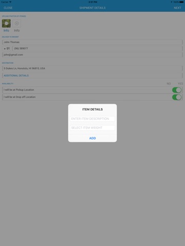 - Enter where it needs to be picked up and where it is going