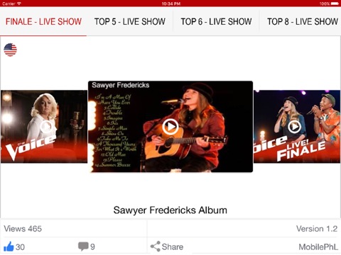 - Ứng dụng tổng hợp The Voice của một số quốc gia nổi tiếng như USA, Germany, Australia, Đối với người dùng Việt có thể đánh giá và bình chọn cho giọng hát mà mình yêu thích thông qua ứng dụng.