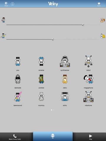 * Unique voice changer filters including synthesizer, zombie, reverse, mummy, ghost and a lot more!