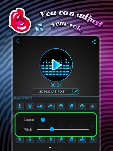 You control how you want to sound! There is no limit on the creativity and fun combinations that you can do with Voice Chang.er. Mix and match your voices and hear yourself as a girl, man, woman, rabbit, turtle, and more! The combinations are endless and your creativity is the limit.
