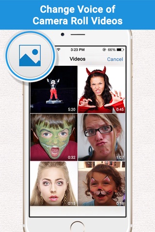 Voice Changer Video Booth is a fun application to record videos with hilarious voice effects. You can talk like a Robot or sing like a Violin. Sound like a clown or have Guitar Voice. To make it more humorous you can speed up or slow down voice and video.