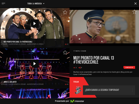 The Voice Chile Aplicación oficial, te permite vivir nuestro programa en primera fila disfrutando de videos exclusivos, conociendo las historias y escuchando las voces de los participantes. Aquí entérate de todo lo que pasa con las últimas noticias de los talentos y coach. Con la Aplicación oficial de The Voice podrás: