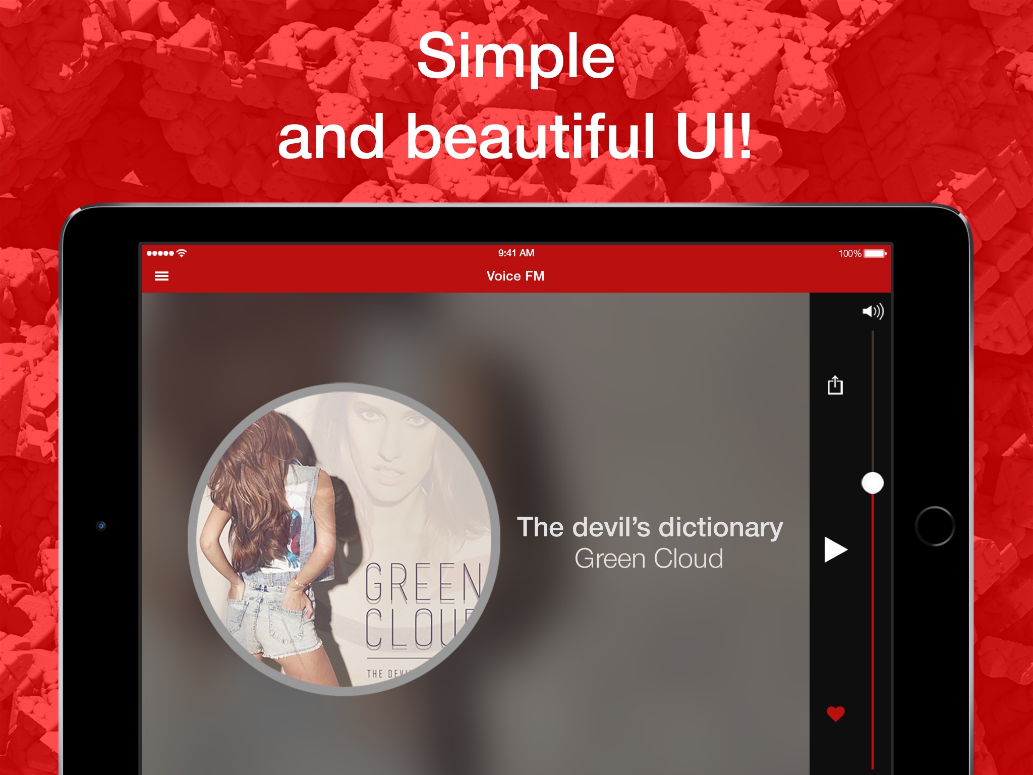• Easily add tracks to your favourite by simply clicking the «heart» icon.